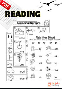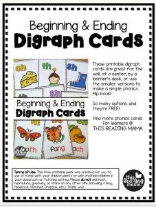 Beginning or Ending Diagraph Card/Grade 3 to 12